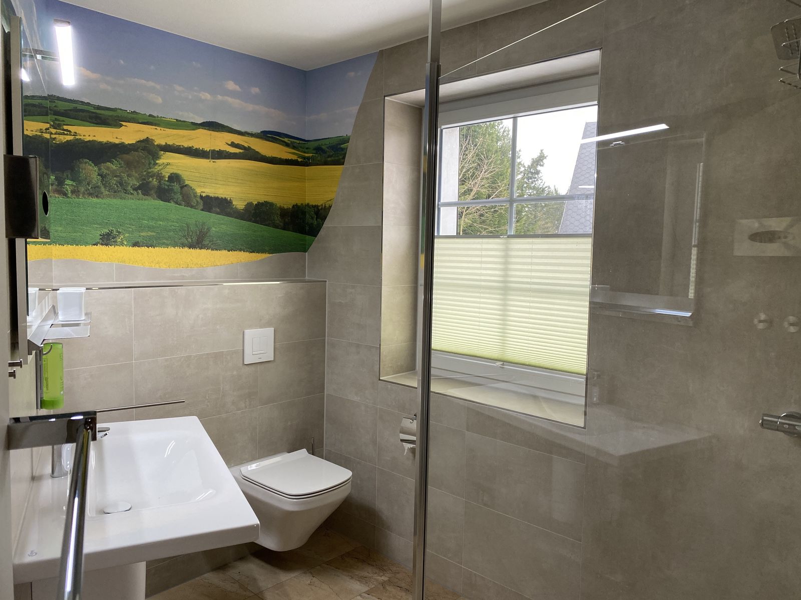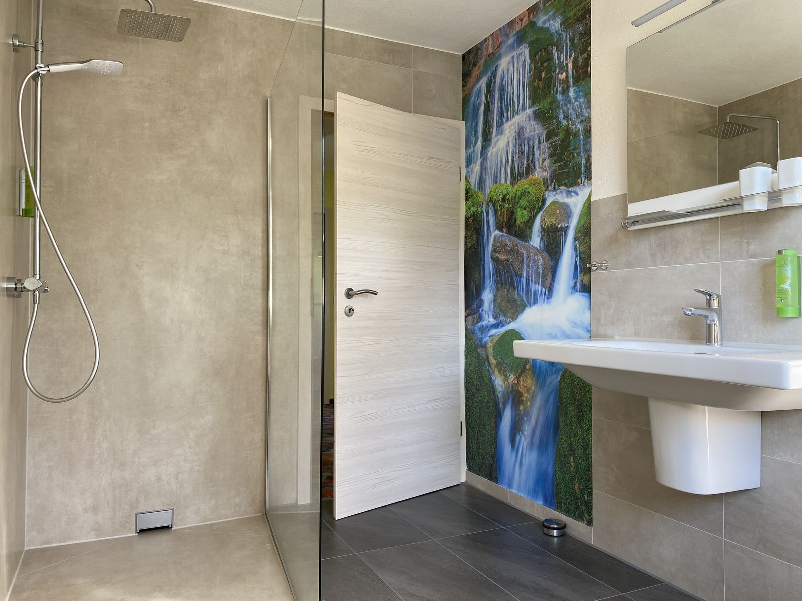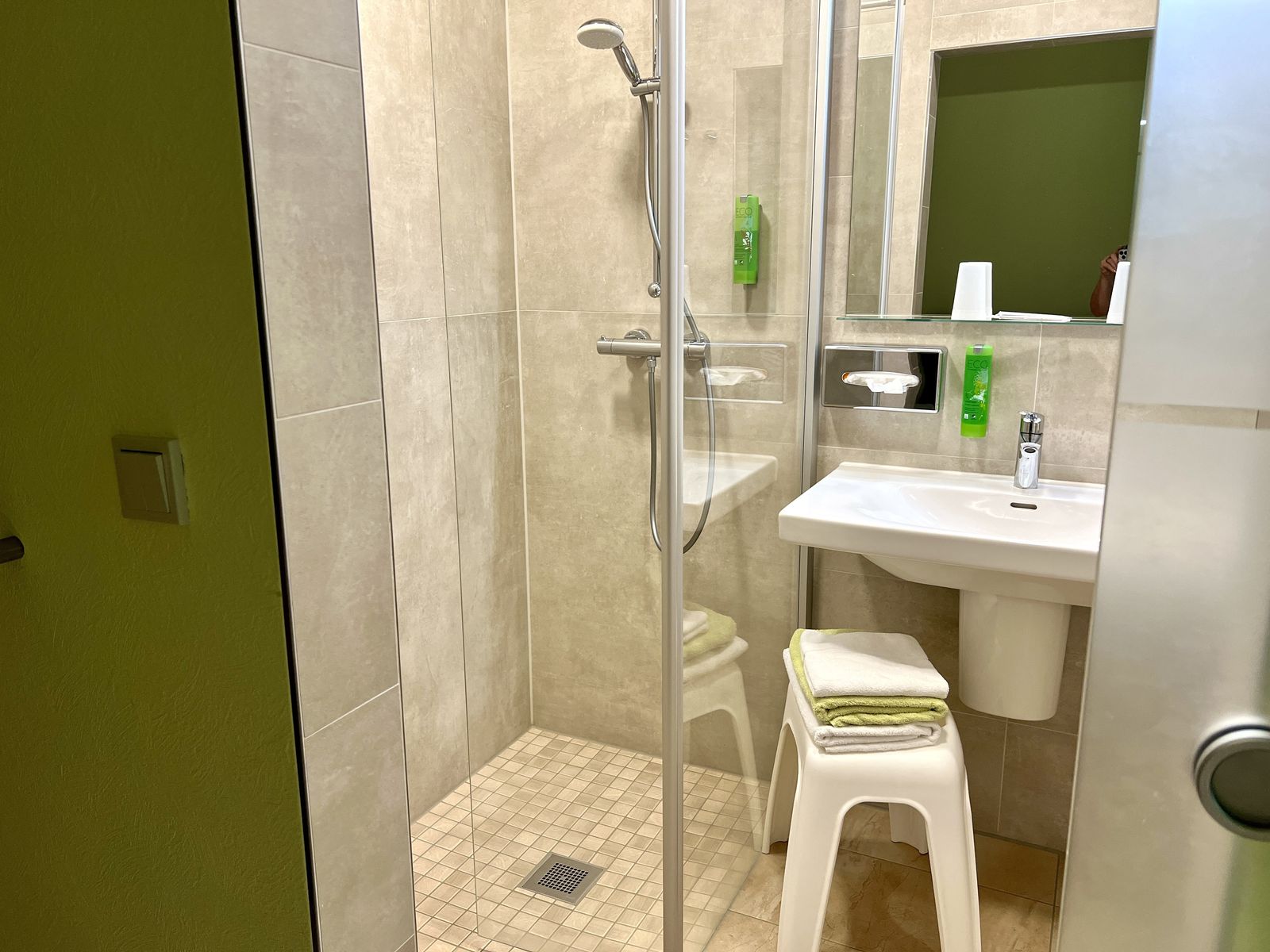 - Bad mit begehbarer Dusche/WC, Handtuchwärmer, Föhn