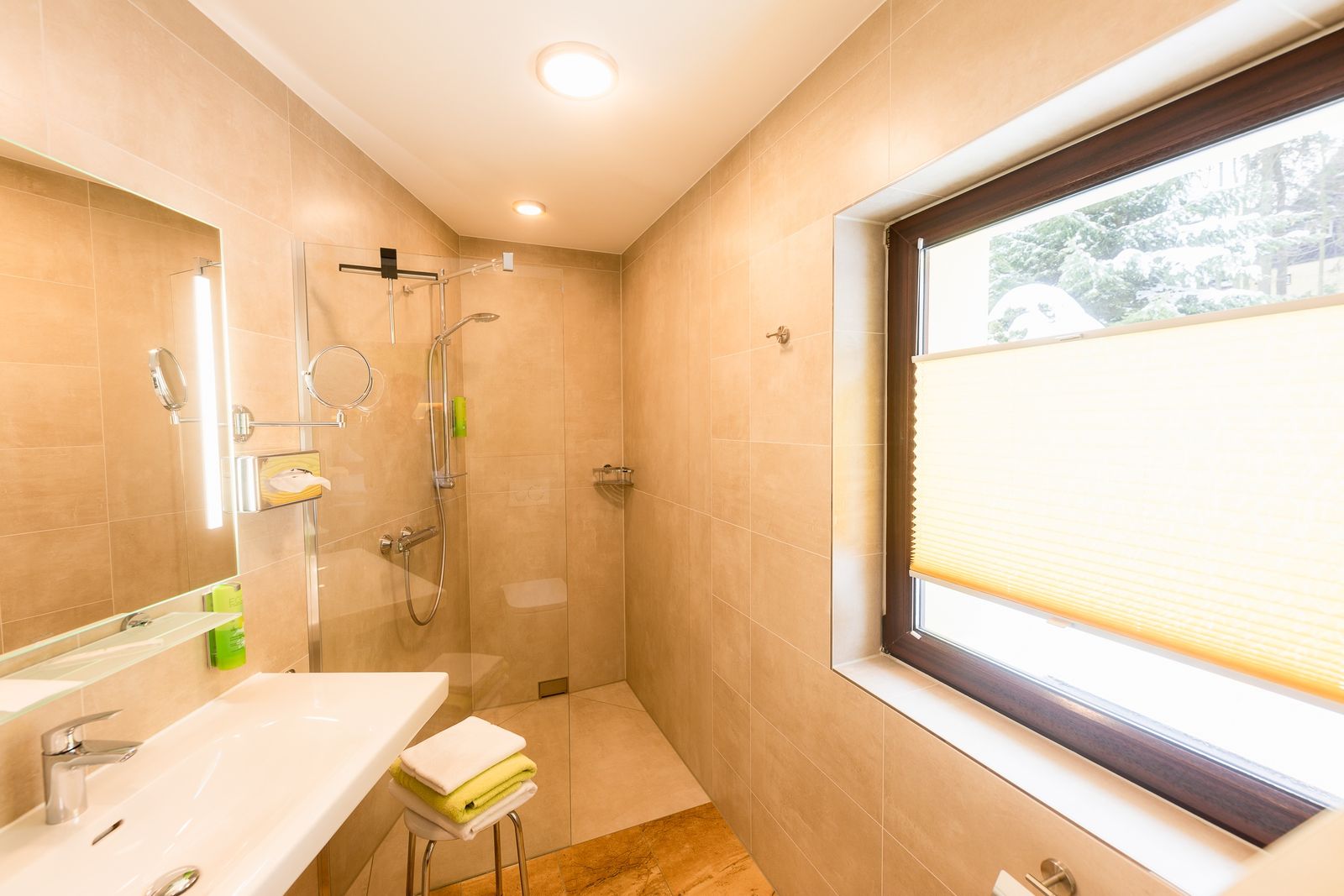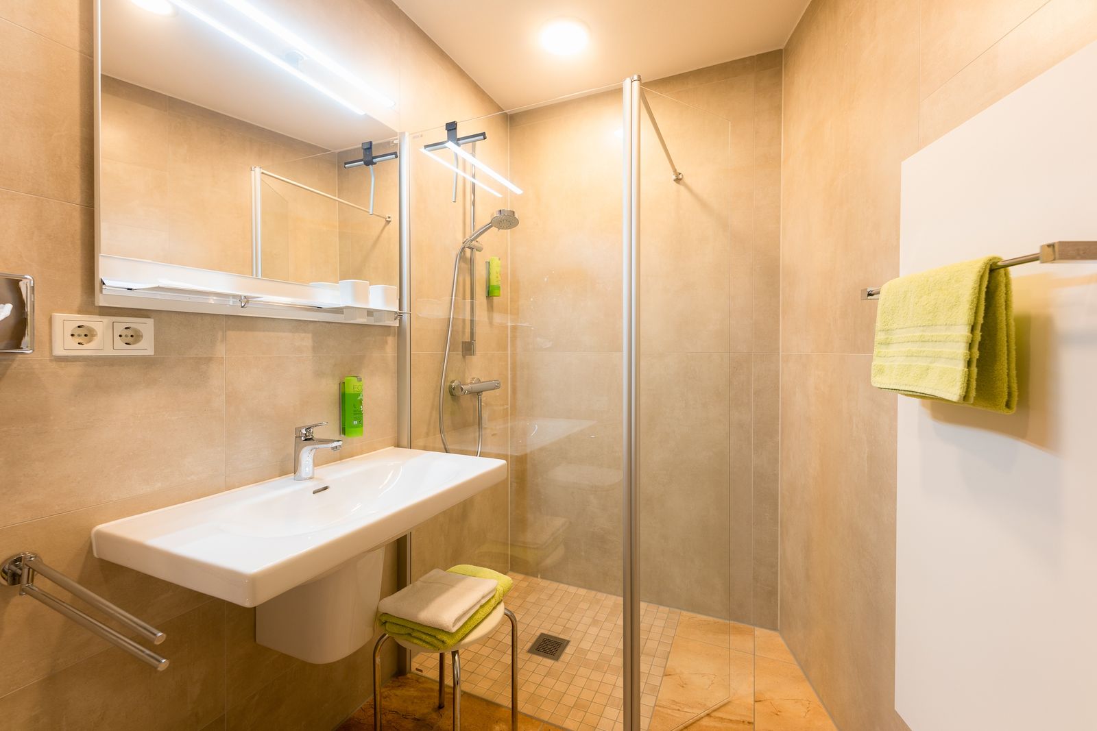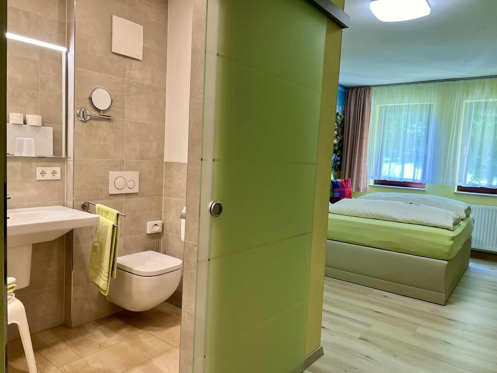 - Bad mit begehbarer Dusche/WC, Handtuchwärmer, Föhn